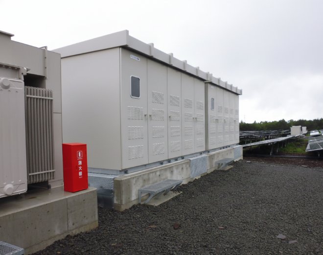 パワーコンディショナ、配電設備、昇圧トランスを収納した電源システムを一体設計。別々に調達・設置する手間を省き、工期短縮とコスト削減を同時に実現。Integrated power systems housing PCS, distribution, and transformers. Reduces procurement and installation time.