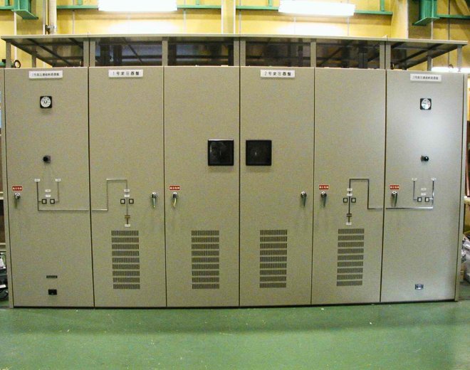 パワコン収納盤・集電箱・昇圧トランスを一体設計。省施工・省スペースで、再エネプロジェクトのコストと工期を最適化します。Integrated PCS enclosures, junction boxes & step-up transformers. Space-saving designs that optimize cost and schedule.